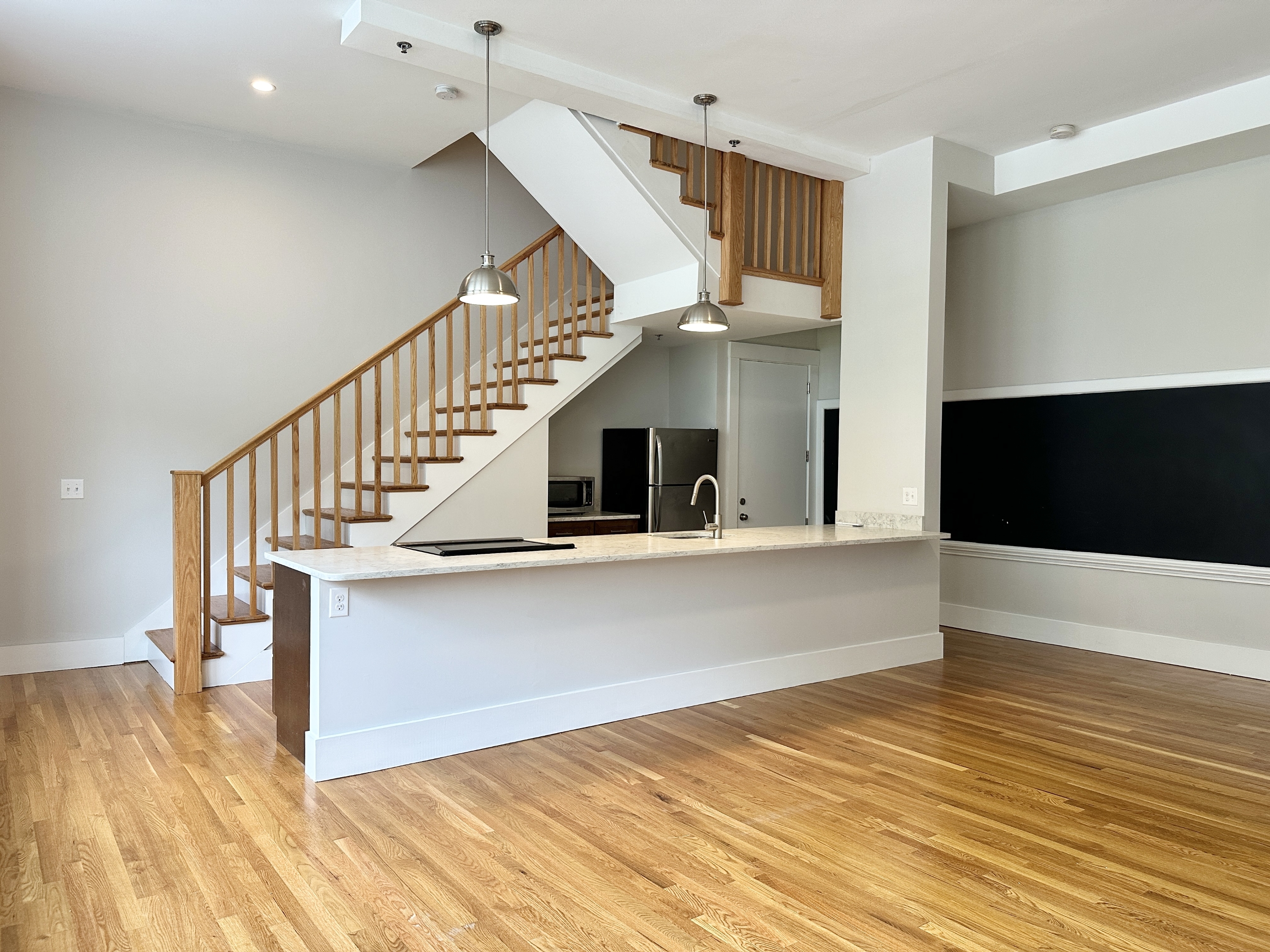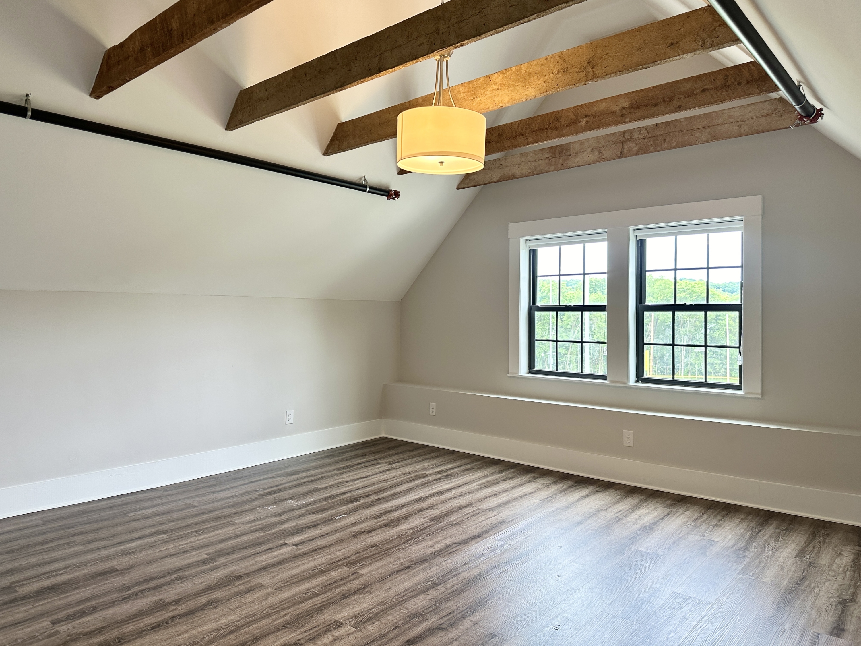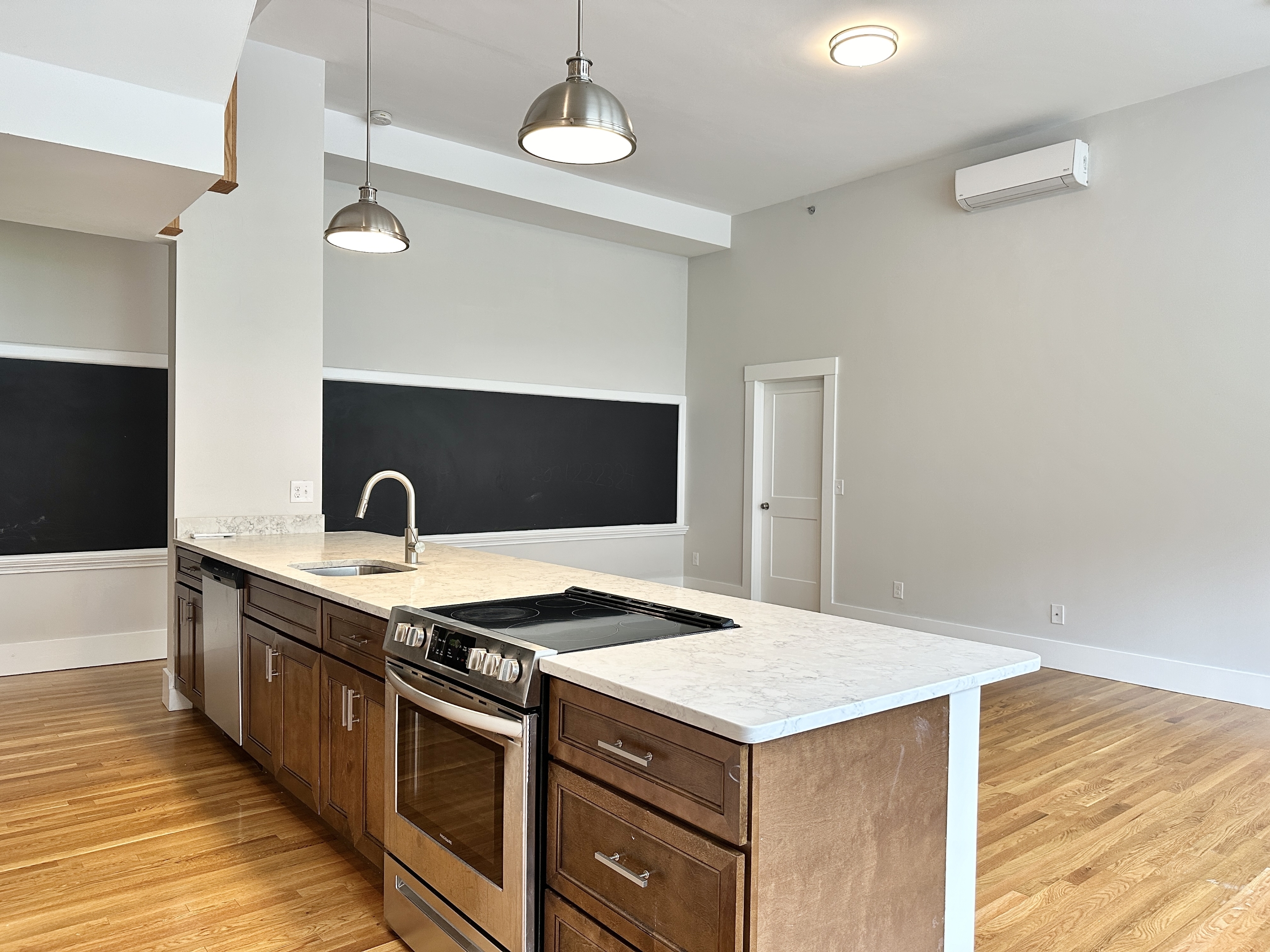 Flexible move-in, your choice of Nov 1st or Dec 1st, 2025. This corner, loft style 2 bed 2 bath is one of the largest most desirable units in the building. Pictures depict the mirror-image unit. Built in a former classroom in the Indian Hill School, this unit has a total of 2 beds, 2 baths. The upstairs suite has a bedroom and full bathroom, allowing private space separate from the main floor. Rent includes one outdoor parking space; additional parking is available for rent if needed. This historic, tudor-style schoolhouse underwent a complete renovation in 2019 to convert to loft style apartments. Original architectural features such as chalkboards, huge windows, and high ceilings remain throughout. All units feature luxury kitchens with quartz counter tops and stainless steel appliances, in-unit laundry hookups, central A/C, and cable TV available. The Off-street parking & free basic WIFI is included. Great location with easy highway access. The building is pet-friendly, with an on-site dog park! Also right next door to the newly renovated Indian Hill Park, with playgrounds and baseball fields.
